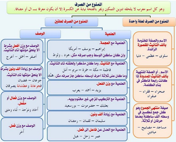 الممنوع من الصرف على ثلاثة أشكال : أسماء وأعلام وصفات