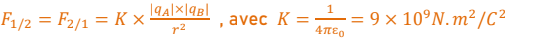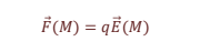 Le lien entre la force électrostatique subie par la charge témoin q au point M et le champ électrostatique ressenti en ce lieu, noté , est donné par la relation :