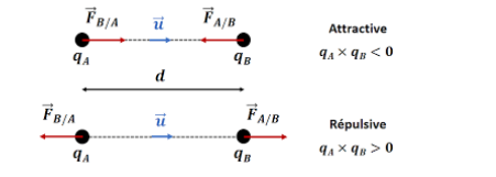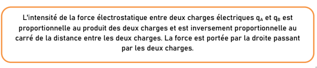 Dans une région de l’espace la charge électrique crée autour d’elle un champ électrique et tout corps chargé qui se trouve en un point de ce champ, est soumis à une force électrique.