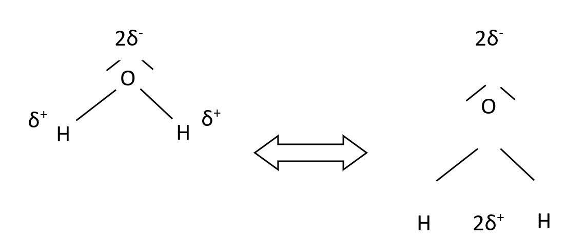Le barycentre des charges négatives est différent du barycentre des charges positives : La molécule d’eau a un caractère dipolaire.