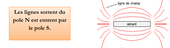 Les lignes de champ magnétique indiquent en tous points du champ la direction et le sens du vecteur B: