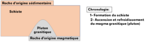 Enoncé: "lorsqu'un bout de roche est inclus dans une couche d'une autre nature. la formation de cette inclusion est antérieure à la formation de la roche qui l'enferme."