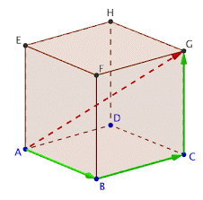 $$\overrightarrow{A G}=\overrightarrow{A B}+\overrightarrow{B C}+\overrightarrow{C G}$$