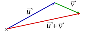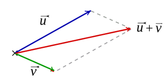 • Commutativité : soient $$\vec{u}, \vec{v}$$ deux vecteurs de l'espace, $\\[0.2cm]$ alors : $$\quad \vec{u}+\vec{v}=\vec{v}+\vec{u} \\[0.2cm]$$