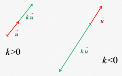 Alors le vecteur $~\vec{p}=k \vec{u}~$ a la même direction que $\vec{u},$ mais le sens dépend du signe de $k :\\[0.2cm]$