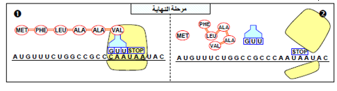 تنتهي الترجمة عند وصول الموقع A للجسيم الريبي إلى وحدة رمزية لا تجد لها أي حمض أميني مناسب وفق جدول الرمز الوراثي والتي نسميها وحدة رمزية بدون معنى أو الوحدة قف، فتنفصل وحدتا الريبوزوم ويتم تحرير السلسلة البيبتيدية المركبة بعد فصل طرفيها المتمثلين في الحمض الأميني الأول وهو الميثيونين وآخر جزيئة ARNt.