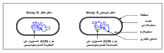إن المسؤول عن مراقبة الصفات عبارة عن مقاطع من جزيئة الADN، حيث يراقب مقطع من هذه الجزيئة الحساسية لدى الشكل Strep S بينما يراقب مقطع جديد وفي نفس موقع المقطع السابق صفة المقاومة للستربتوميسين عند الشكل الطافر، نسمي هذا المقطع بالمورثة. تتواجد الصفة "القدرة على مقاومة الستربتوميسن" في الطبيعة إذن بشكلين أي مظهرين خارجيين مختلفين هما: