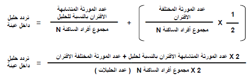 اذا اعتبرنا ساكنة متوازنة حيث تردد الحليلات متساو عند الجنسين سيكون لدينا: