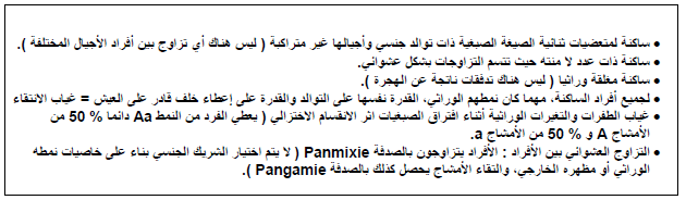 يعتبر العالمان أن ترددات الحليلات والأنماط الوراثي تبقى مستقرة من جيل لآخر داخل الساكنة إذا توفرت على مجموعة من الخصائص النظرية والمثالية وبالتالي توصف الساكنة بأنها متوازنة أو في حالة توازن.