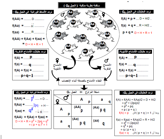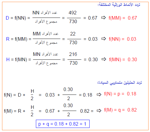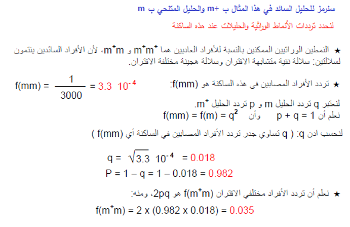 اذا اعتبرنا ساكنة متوازنة حيث تردد الحليلات متساو عند الجنسين سيكون لدينا: