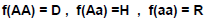 لتبسيط الدراسة ندرس انتقال مورثة واحدة في حالة السيادة التامة، حيث يعبر A عن الحليل السائد و a عن الحليل المتنحي فيكون بالتالي: