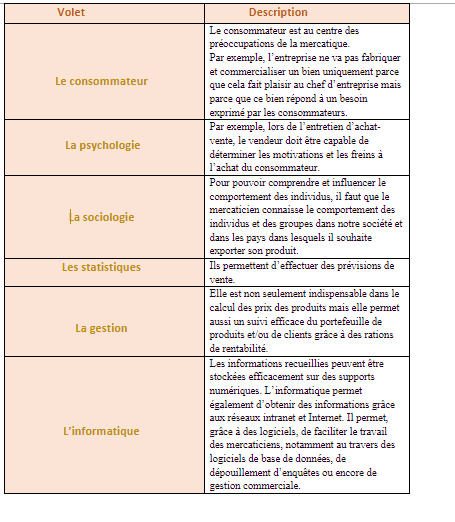 La mercatique est une notion qui regroupe plusieurs domaines (informatique, gestion, statistiques, psychologie, sociologie…). Elle peut se définir comme un ensemble de méthodes et de techniques, utilisées par une organisation pour prévoir et/ou influencer les besoins des consommateurs, puis pour adapter ses produits et sa politique commerciale aux besoins mis en évidence.