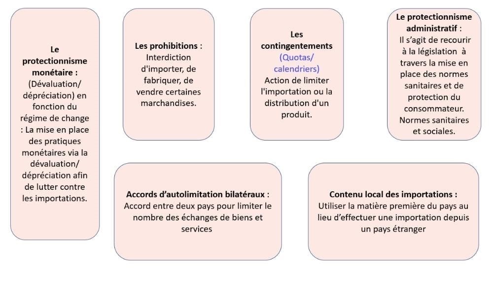 On parle bien évidemment des droits de douane. Ce sont des impôts qui frappent les marchandises importées au sein du territoire national. Les mesures tarifaires ont pour objectifs d’entrainer une baisse des importations et de rendre le produit importé plus cher et incompétitif sur le plan national.