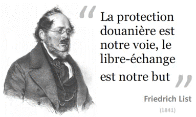 En 1841, l’économiste Friedrich LIST, bien que partisan du libre-échange, ce penseur allemand a été le premier à prôner l’isolement économique. Une étape nécessaire, selon lui, pour les pays les plus fragiles, avant d’affronter le grand bain de la concurrence. Il considère qu’un Etat doit mettre ses industries naissantes à l'abri de la concurrence étrangère. Cette protection peut se faire par le biais de droit de douanes élevés, mais de façon provisoire.