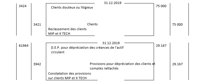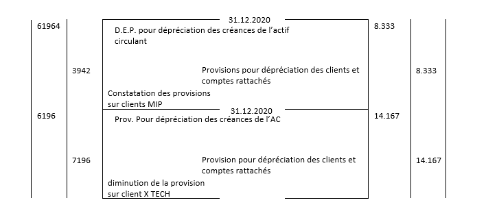Exemple : La société « said & associés » détient deux créances sur des clients dont la situation financière n’est pas saine et décide de constater les dépréciations nécessaires.
