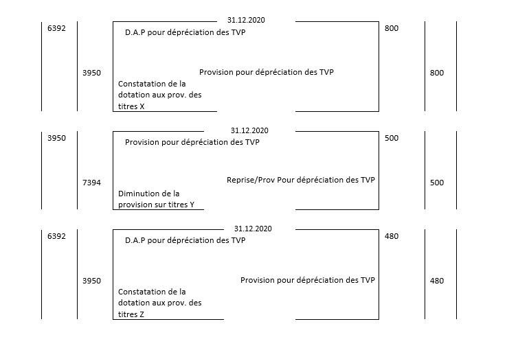 Le principe de traitement des TVP concernant l’évolution de leur cours (dotation/reprise) est le même que celui des titres de participation. La différence réside uniquement dans l’intitulé des comptes et dans la régularisation de la cession.