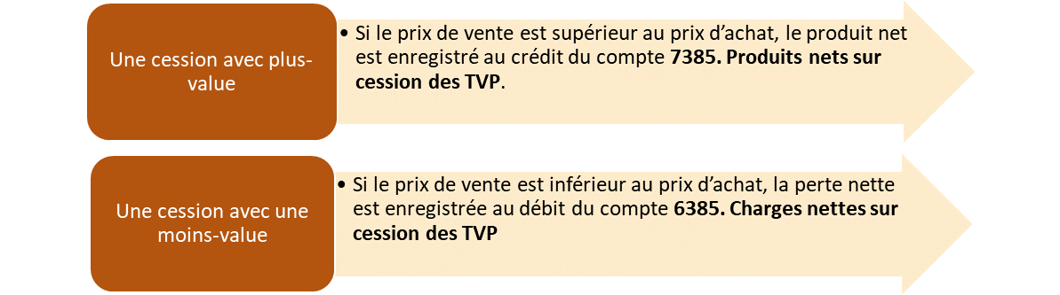 Les TVP sont des titres et valeurs (actions, obligations, …etc.) acquis par l’entreprise en vue de les céder à court terme et réaliser ainsi un gain à brève échéance (moins d’un an).