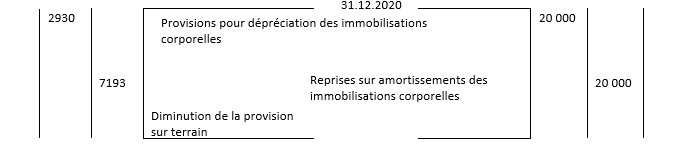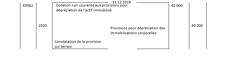 Exemple : la société « said et associés » détient un terrain acquis le 28/02/2014 à une valeur de 200.000 MAD. Suite à un événement exceptionnel, le 31.12.2019 la valeur du terrain est de 160.000 MAD. Passer les écritures de régularisation au 31.12.2019