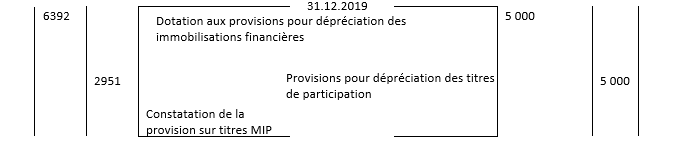 Au 31.12.2019, la valeur unitaire des titres « MIP » sur la bourse est de 190 MAD, passer l’écriture d’inventaire.
