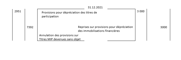 3 – Passer l’écriture d’inventaire si la société cède au 31.12.2021, 300 dans le cas 2.2