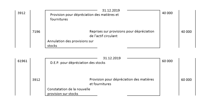 Au 31.12.2019, la société a réalisé son inventaire extracomptable des stocks et a relevé une dépréciation de 60.000 MAD.