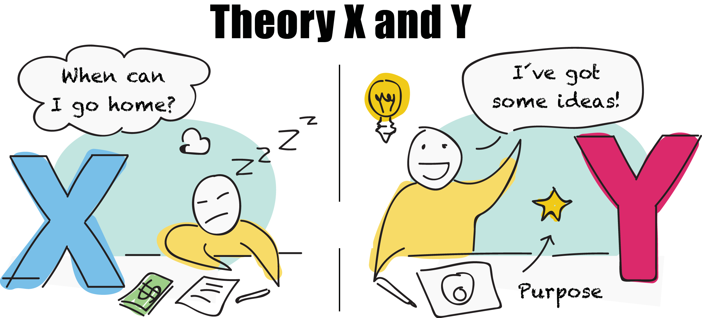 Douglas McGregor propose deux visions distinctes de la nature humaine : l’une fondamentalement négative, la théorie X ; l’autre fondamentalement positive, baptisée théorie Y.