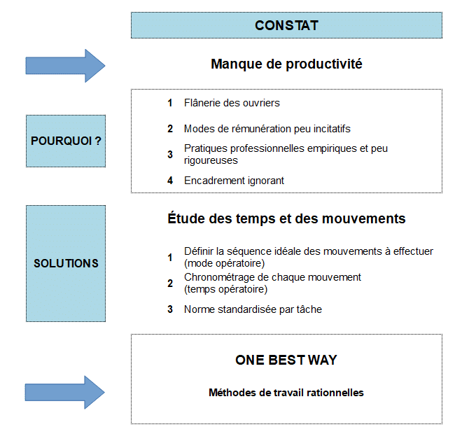 Pour les auteurs classiques (F. W. Taylor, H. Fayol), la rémunération, principalement le salaire au rendement, est l’unique moyen d’inciter le salarié à augmenter ses rendements. C’est donc la seule source de motivation. Taylor propose l’organisation scientifique du travail comme le meilleur système qui permet à l’entreprise d’être efficiente et efficace (gains de temps et productivité élevée). Pour sa part, Fayol propose la gestion administrative du travail.