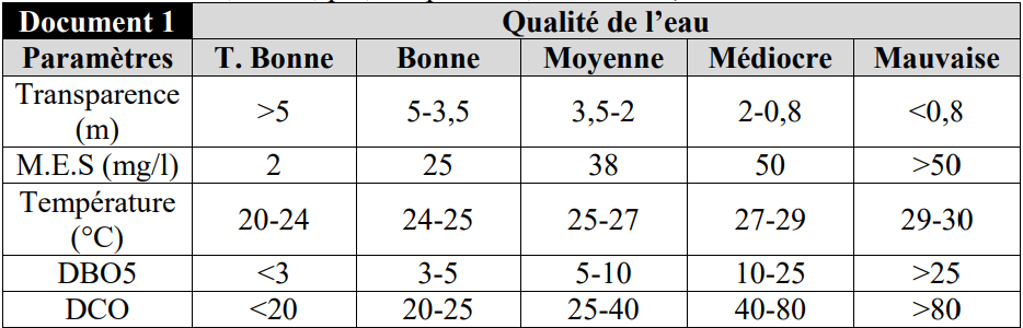 D'autres critères sont évalués en laboratoire: Nitrates, phosphate, chlorure, sulfates, $\mathrm{DBO}_5, \mathrm{DCO}, \ldots$