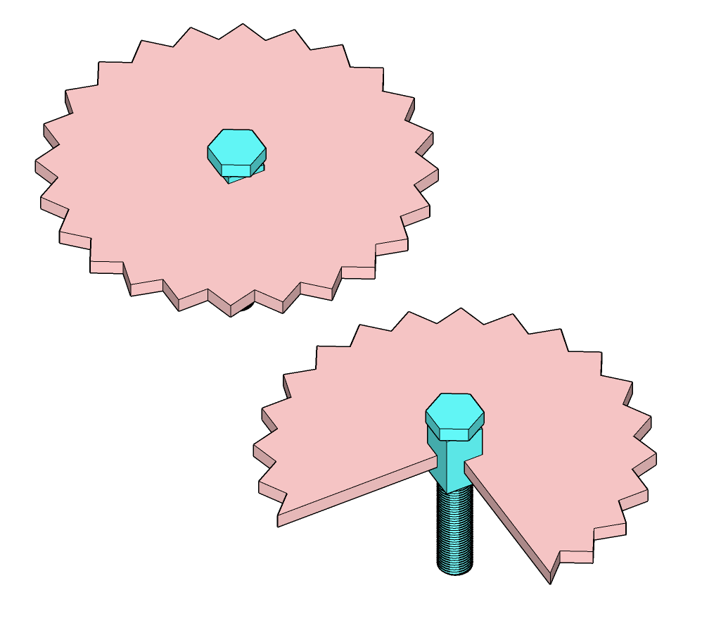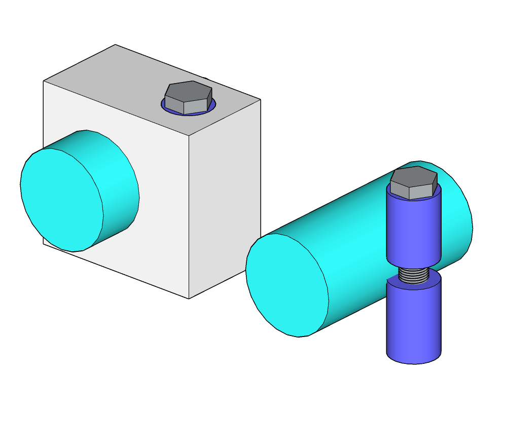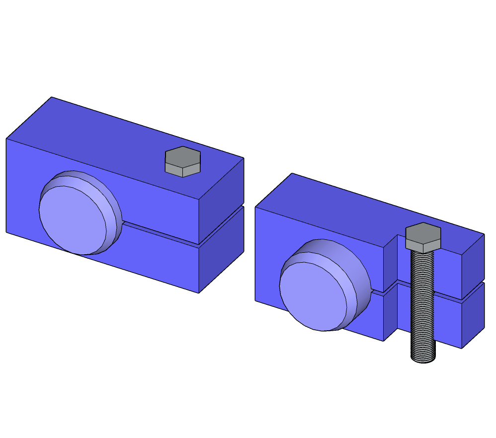 Encastrement par tampon tangent, la MIP se fait à travers la surface cylindrique de contact, le boulon d’assemblage assure le MAP en serrant la partie extérieure.