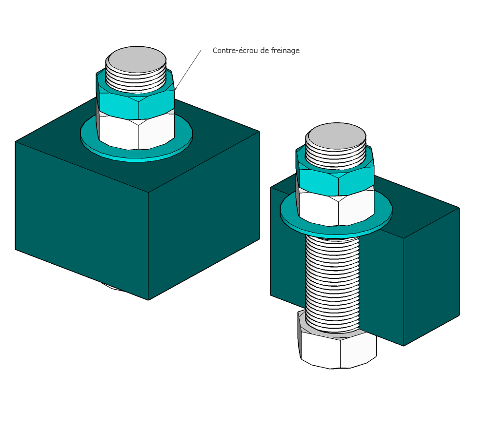 Maintien par contre-écrou : le deuxième écrou bloque l’échappement de l’écrou de MAP en cas de vibrations.