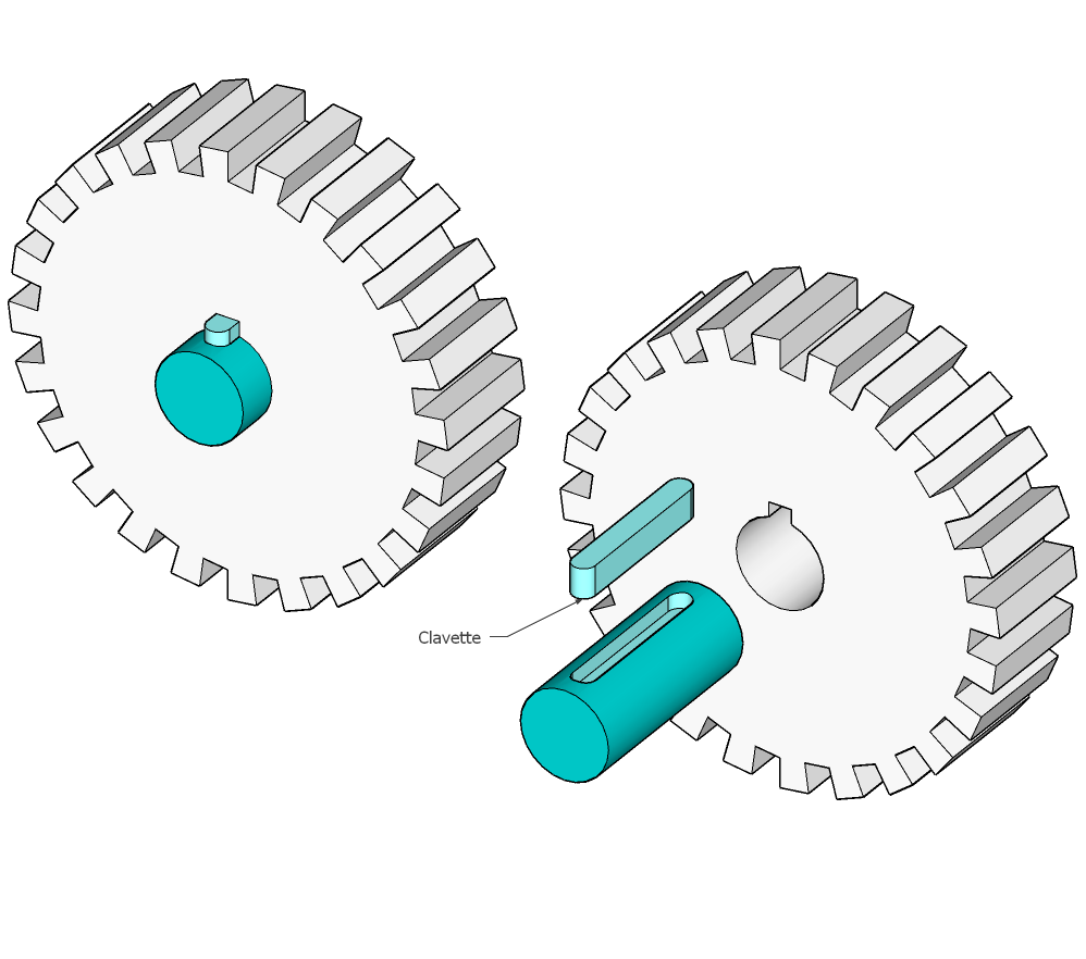 Encastrement par clavette, la MIP se fait à travers la surface cylindrique, la surface place de contact entre la clavette et les éléments assemblés.