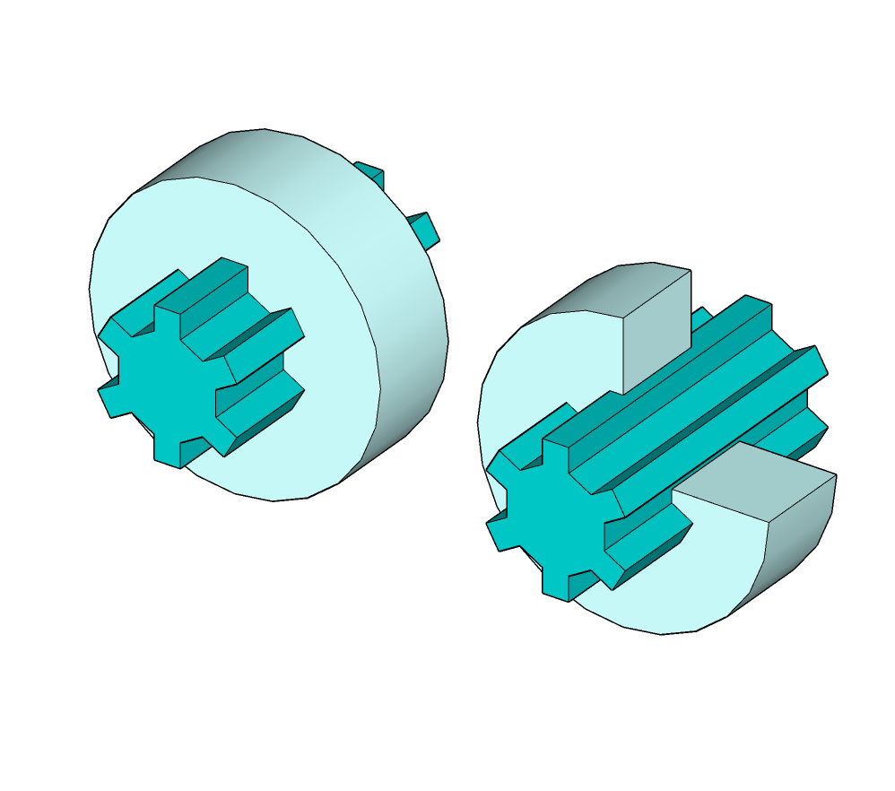 Encastrement par forme spéciale, la MIP se fait à travers la surface de la forme, l’encastrement par cannelure est un cas spécial de l’encastrement par forme spéciale.