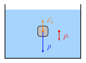 $$\overrightarrow{F_{A}}$$ : poussée d’Archimède
