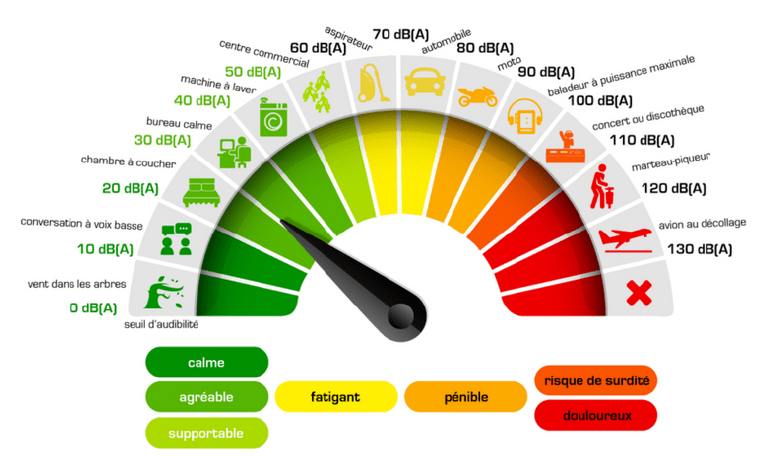 Question : Quel est en décibel, le niveau d'intensité sonore de la douleur ?