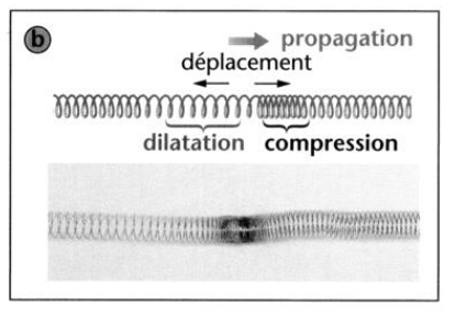 - Longitudinales : la direction de propagation de I'onde est parallèle à la direction de déformation.