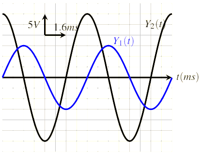 On considère les deux tensions alternatives sinusoïdales représentées par les deux courbes suivantes :