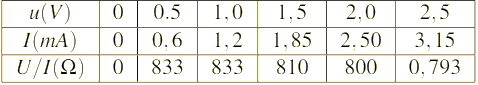 Reprenons le montage précédent, pour une fréquence fixée de la tension, on fait varier la tension efficace U du générateur. On mesure les valeurs de U et I et on relève le déphasage $$\varphi_{u / i} $$, pour le déphasage, on constate qu’il reste constant quelque soit la tension efficace U et pour I et U on les regroupe dans le tableau suivant :