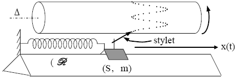 L'enregistrement montre que la fonction $\mathrm{x}=\mathrm{f}(\mathrm{t})$ est sinusoïdale, $\left(-\mathrm{x}_{\max } \leq \mathrm{x} \leq \mathrm{x}_{\max }=\mathrm{d}\right)$.