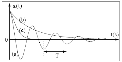 a) Faible amortissement : régime pseudo-périodique. Plus l'amortissement est faible plus la pseudo-période est proche de la période-propre $T \approx T_0$.