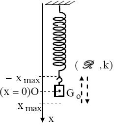 Or, $\quad \ddot{x}=-\frac{\mathrm{k}}{\mathrm{m}} \cdot \mathrm{x} \quad$ d'où: $\left(\frac{2 \pi}{\mathrm{T}_{\mathrm{o}}}\right)^2=\frac{\mathrm{k}}{\mathrm{m}}$