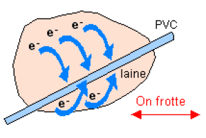Électriser un corps solide par frottement revient à lui apporter ou lui retirer des électrons en le frottant par un autre corps.