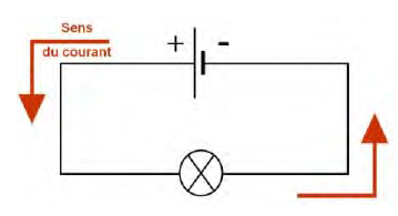 Dans un circuit, le courant électrique circule à l'extérieur d'un générateur du pole + vers le pole -