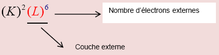 Donner la structure électronique d'un atome, c'est indiquer le nombre d'électrons sur chaque couche. Cette structure électronique s'exprime en plaçant entre parenthèses la lettre indiquant la couche, et en exposant le nombre d'électrons s'y trouvant.