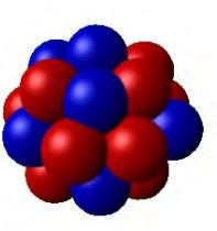 Le noyau atomique est de forme sphérique, son rayon est quelques femtomètre $$(\mathrm{fm})$$.