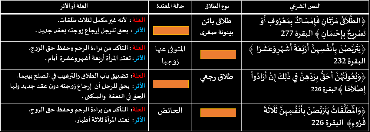 :ج- فصل الإسلام في أحكام الطلاق لحكم وغايات، املأ الجدول بما يناسب