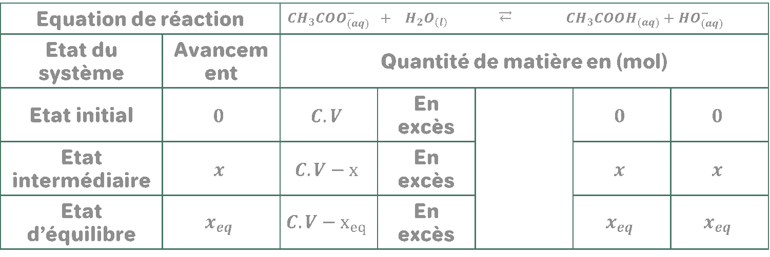 L’eau est utilisée en excès, le réactif $$ \mathrm{CH}_{3} \mathrm{COO}^{-} $$ est limitant: