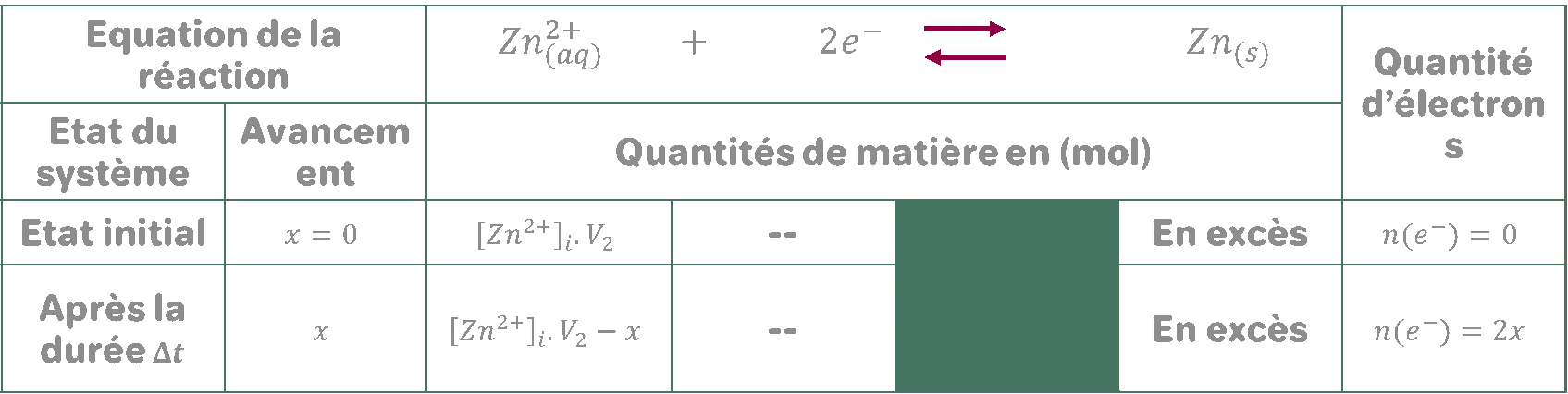 D’après le tableau d’avancement: $$ n\left(e^{-}\right)=2 x $$