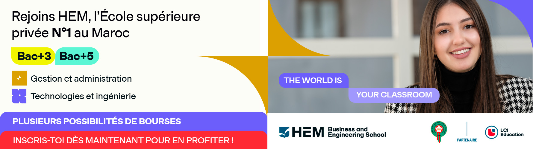 Merci, tu peux maintenant télécharger la brochure de HEM Business & Engineering School Brochure HEM Business & Engineering School Un conseiller HEM pourrait te contacter prochainement pour te donner plus d’informations.