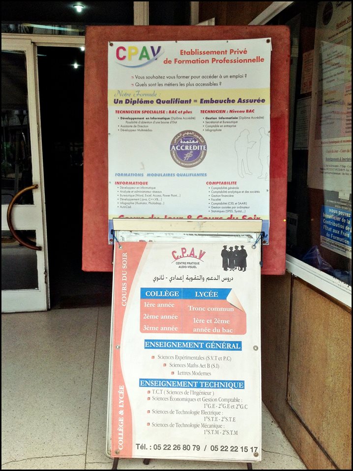 Le CPAV est l’un des pionniers établissements privés de formation professionnelle, est autorisé pour former les jeunes pour accéder à un emploi grâce à ses diverses formations modulaires qualifiants.